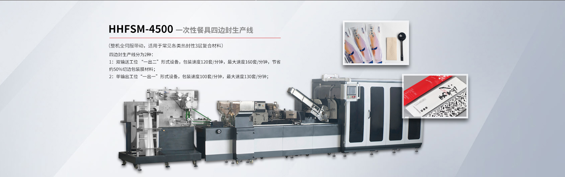 貴司專(zhuān)注于研發(fā)一次性紙巾筷子餐具包生產(chǎn)線(xiàn)、紙巾刀叉航空餐具包裝生產(chǎn)線(xiàn)、一次性餐具套裝四邊封生產(chǎn)線(xiàn)、塑料杯(碗)、吸管全自動(dòng)點(diǎn)數(shù)自動(dòng)包裝機(jī)及五金(塑料)制品包裝機(jī)等各類(lèi)包裝機(jī)。